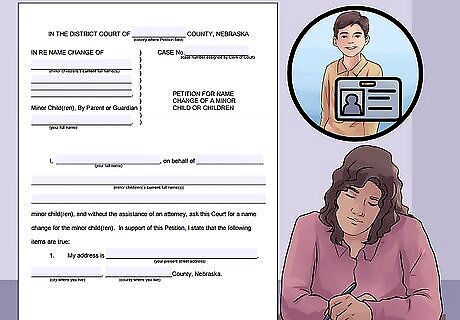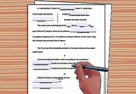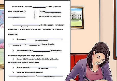Fill out a Name Change Petition. You will be required to fill in a Nebraska Name Change Petition, which will act as the official application for changing your name. You will fill in your current address and county of residence, as well as your current and desired first, middle, and last names. You will also indicate on this form why you wish to change your name.