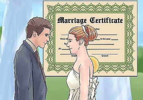 Get a marriage certificate. Apply for marriage licenses after you have set your wedding date and complete the application between seven and 30 days beforehand. Apply with your county clerk. The officiator of your wedding will send the signed license in to be recorded, after which you will receive a marriage certificate.