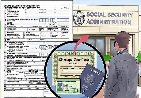 Change your name with the Social Security Administration. Complete the SS-5 form. Gather certified copies of marriage or divorce or annulment certificate. Bring the completed SS-5 form and certified copies of marriage or divorce certificates along with a Nebraska driver's license, state ID, or passport to the SSA office. You will also need a U.S. birth certificate, U.S. citizenship certificate, or work authorization letter and I-94. You can also apply by mail by mailing your documents to your local SSA office along with the SS-5 form; your documents will be mailed back to you. You will receive your documents and new social security card with your new name by mail.