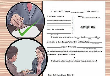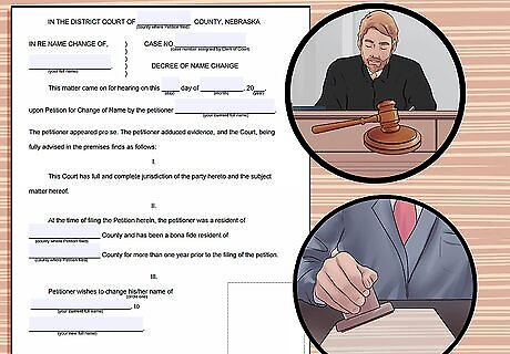Attend your hearing. You will need to attend your hearing and testify under oath about the issues raised in your petition. Afterward, the court will either agree to grant your name change or not.