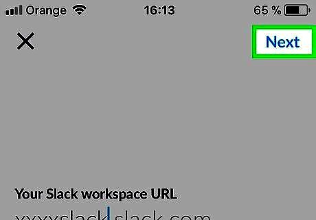 Enter your team’s workspace URL and tap Next. This follows the format yourteamname.slack.com.