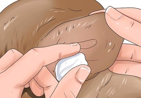 Lift the dog's tail to expose the rectum. Lift from the base of the tail, rather than the tip. This will give you more control over the animals movement and prevent the dog's tail from wagging. It may be helpful to have your helper hold the dog's tail up for you.