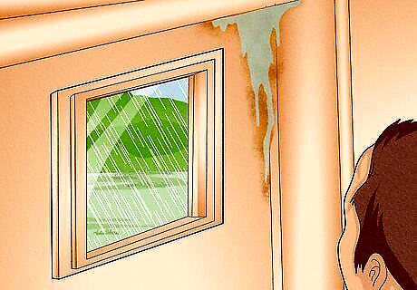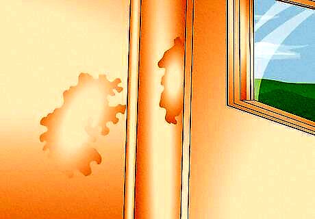 Look out for discoloration. To check for leaks you’ll need to look out for discoloration on the inside roof and walls of the shed. You’ll need to check for any discoloration to the structure, particularly stains and darker patches. Check the sides of the shed for dark patches or streaks as this may indicate dripping or running water. You should also look for discoloration on fabric, as it could mean there is mold growing. There may also be signs of mold, especially on any fabric stored in the shed. Check fabric for any dark spots of mildew. However, keep in mind that mold can also be caused by condensation.