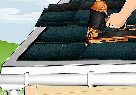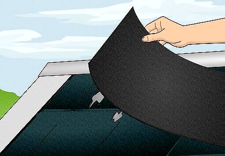 Repair the roof. Repair any damage you can see to the external roof by replacing lost tiles or shingles. Avoid making any further holes in felt roof material by nailing down loose bits.