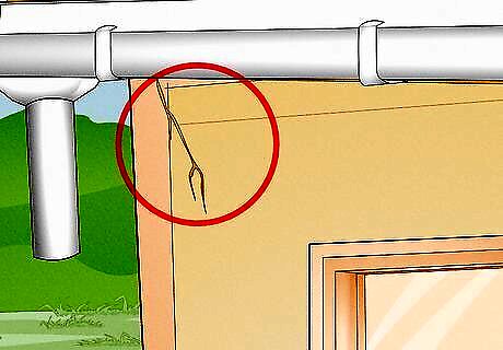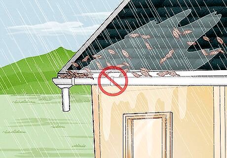 Avoid guttering problems. Guttering is a means of moving water away from the shed by directing it to drains in the ground. Check that any guttering you have on your shed is clear and moving water as it should do. If it is leaking it can cause water damage. Gutters can get clogged up with dirt, moss, leaves and dropped fruit from trees. Clear this if it is causing a problem.
