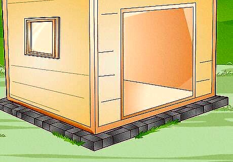 Use breeze blocks if you don’t want to lay a concrete base. If you don’t want to lay a concrete base, you can sink some paving slabs or breeze blocks so the top edge is slightly above ground level by about an inch. Lay wooden planks above these as a base for your shed. This keeps the shed above the damp ground and lets air circulate underneath.