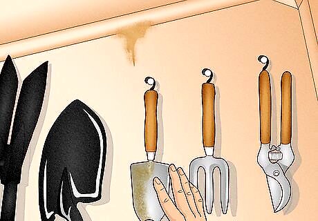 Examine all the items in your shed to determine what the water is dripping on to. You should also look for discoloration, like patches of rust, on your tools and any other metal items. The items affected may not be directly under the source of the leak as water may be running down the walls and collecting elsewhere.