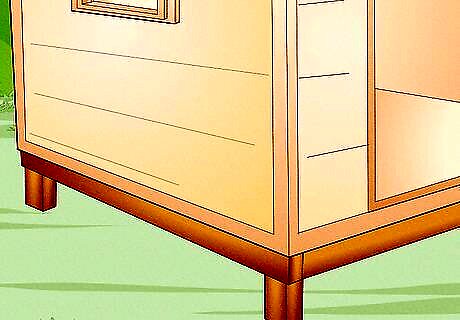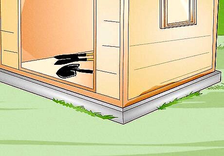 Consider raising your shed if you suspect water is coming in from below. Ideally you should cast a concrete base slightly larger than your shed base. To do this: Use wooden planks to define the area and contain the concrete. Lay about 6 inches (15.2 cm) of hardcore and then 6 inches (15.2 cm) of concrete on top of that. You can anchor your shed to the concrete base using bolts. It’s important that the water drains away from the shed and doesn’t pool against the edges.