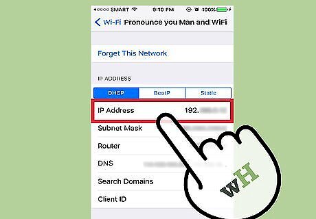 Tap a current network. You won't be able to view the IP address of a network to which you aren't currently connected.