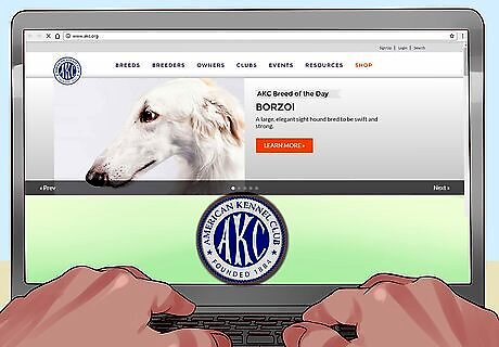 Contact a breeder. If you have a specific breed in mind, then you can go through a breeder to get your dog. One way to find a reputable breeder is to look at the websites of dog groups that focus on the breed you want. They should have lists of reputable breeders that specialize in the breed you want. Discuss the breeder's practices and standards with them before committing to buying a dog from them. This will help ensure that you are paying an ethical breeder.