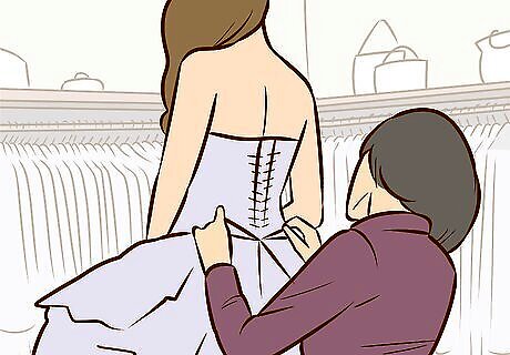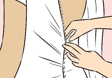 Buy a dress that fits now. You may be planning to lose a few pounds before your wedding day. This is a worthwhile goal, but you may not reach your precise goal in time for your wedding. It's much easier to have a dress that's too big altered than try to squeeze into a dress that's too small on your wedding day.