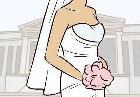 Select a modest fit. If you want a modest dress, you probably don't want something that's low cut, short, or very fitted. There are many options for a great cut for a modest wedding dress. Go for a longer dress. Something that's at least below your knees is great for a modest wedding dress. A ball gown gives a fairy tale vibe to your wedding and is generally not too revealing. If you want something that highlights your figure more, without being overly revealing, try a mermaid cut. If a mermaid dress feels too revealing, a fit and flare dress can be a great in between. It shows off some of your figure without being as clingy as a mermaid cut.