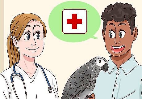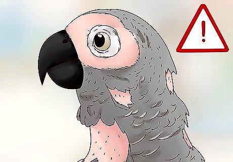 Examine the bird. When you're looking at the African Greys, look for any health issues. To pick a bird that's healthy, avoid any that seem sluggish, have dull eyes, have diarrhea or runny noses, or have broken feathers or physical deformities. If the bird you like has been treated for medical conditions in the past, find out if it will need continuing treatments.
