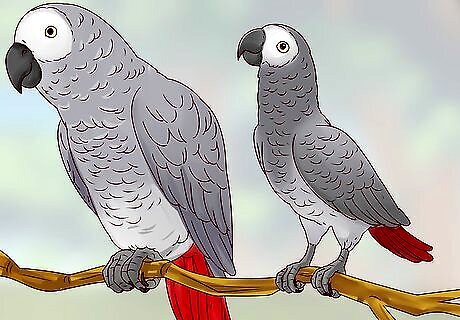 Determine which type of African Grey you want. Once you've decided that you'd like to get an African Grey parrot, you need to decide which type you want to bring home. There are two types, the Congo and the Timneh. The Congo African Grey grows to around 13 inches (33 cm) and has a red tail. The Timneh African Grey is a little smaller and milder mannered than the Congo African Grey. While Congo African Greys can weigh up to 1 pound (450 g), Timneh African Greys only weigh up to 3/4 of a pound. Timneh African Greys grow to around 9 inches (23 cm) long.