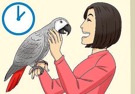 Think about the time investment. African Greys are very social birds and they need to interact with other birds or people every day. Ensure that you'll be home enough to give the companionship your bird needs. You'll also need to give the bird plenty of time each day to get out of its cage and explore. If your African Grey doesn't get enough companionship, it may begin to pick its feathers. Feather picking is a sign of loneliness.