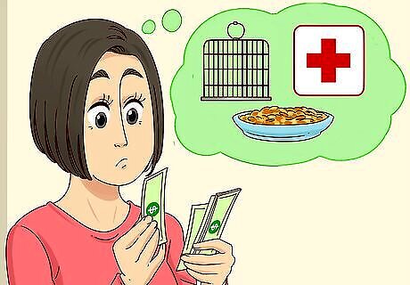 Examine your budget. Decide how much money you're willing to spend every year on your parrot. You'll need to consider the initial cost of the bird, pet supplies (like a large cage and toys or perches), bird food, and trips to the veterinarian. Only commit to getting an African Grey if you're willing to pay for all of these expenses. Remember that you'll be paying to maintain the bird throughout its entire life.