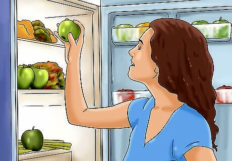 Finish meals with crunchy, high fiber foods. You may already know that eating fruits and vegetables is an essential part to a healthy, well-balanced diet. However, these fibrous, crunchy foods are also great for the maintenance and health of your teeth. There are a couple of reasons why fruits and vegetables are great for your teeth. First off, they require extra chewing (from all that fiber). Chewing stimulates your saliva glands and helps clean your teeth and wash away particles of foods. Chewing also stimulates the periodontal fibers that hold your teeth in the jaw, making them stronger and reducing their mobility. These foods also scrape up against your teeth - in a good way. It can help clean off bits of food from your meals. Dentists recommend eating fruits and vegetables last to help scrub your teeth and produce extra saliva. Finish meals with a crunchy fruit or vegetable like: apples, celery, carrots, raw peppers, a small salad or raw cucumber slices.