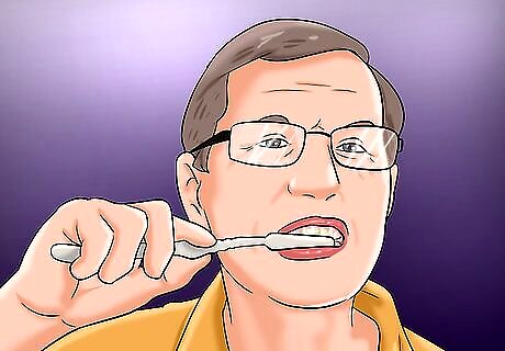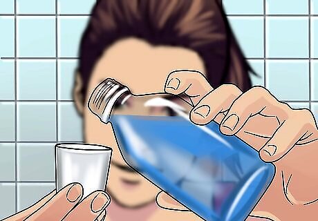 Use mouthwash if directed. Mouthwash isn't something that's necessary for everyone. However, if your dentist recommends using mouthwash, it's a good idea to begin using it regularly. It can help support the health of your mouth and teeth just like flossing and brushing by preventing the gums to swell or bleed from brushing. If you do decide to use mouthwash, make sure to purchase a use a product that contains fluoride. In addition, do not rinse your mouth with mouthwash immediately after you brush your teeth. The fluoride from your toothpaste is a much more concentrated source of fluoride and should be allowed to stay on your teeth and not be washed away by mouth wash. Instead, use mouthwash periodically throughout the day - like after lunch or an afternoon snack. After using mouthwash, do not eat or drink anything for at least 30 minutes.