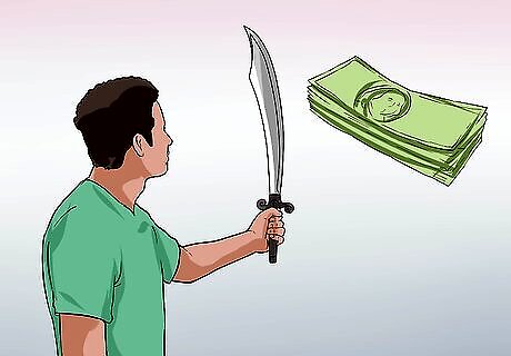 Exercise extreme caution when wielding a sword. All martial arts can be dangerous, but the sword is particularly hazardous because of the sharpness of the blade. Train with good instructors and always handle your sword with the utmost attentiveness. One mistake could result in severe injury and even death. Always keep your sword stowed somewhere safe when not in use. Small children should never have access to your sword in the house.
