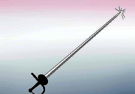 Focus on technique with a lightweight sword. The weight of an actual sword can hinder your training by restricting range of motion. Test for a lighter, more ideal weight by holding the practice sword in your dominant hand for about ten minutes. If you don’t feel any discomfort in your arm during that time period, the practice sword is light enough for your training purposes. Move the sword around a bit and try a few practice thrusts. You should be able to manipulate the sword easily without straining any of your arm muscles. Make sure the practice sword features a blade that is dull (to prevent injury) and somewhat flexible.