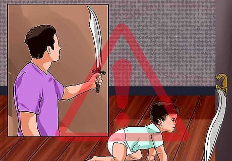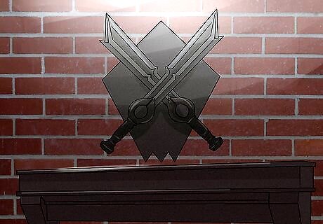 Display your decorative sword safely. Swords are extremely dangerous and should be handled and displayed with extreme caution. If you are doing a wall mount, consider mounting the sword high enough so that it can't be reached (especially by children). A wall mount with a glass case enclosure is the ideal way to hang an ornamental sword. Even if you don't have small children, speak to everyone in your home about safety around the sword.