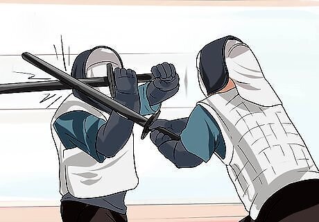 Use a foam or padded sword for intense training with minimal armor. If you want to train in an aggressive fighting style or if you simply don’t want to wear a lot of training armor, a foam or padded sword is the perfect choice for you. These make great training tools because they allow you to engage aggressively while sparring, offering a more realistic combat experience. Minimal armor is required, but keep in mind that foam swords can still be a little painful when used at full force. Minimal armor in this case would be a helmet and groin protection.