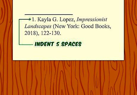 Indent the footnote 5 spaces. Place your cursor in front of the number in your footnote, then type the space bar 5 times. This will slightly indent your citation. Your word processor may allow you to format your footnotes. In Microsoft Word, you can click on the small arrow on the footnotes section under “references.”