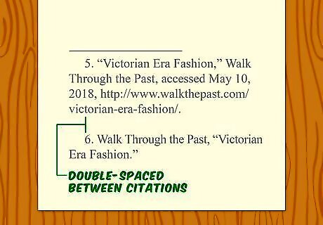 Use double-spacing between your citations. Place your cursor at the end of your citation. Manually press Enter or Return to create an extra space between your citations. You can’t use formatting to double-space your citations since the citations themselves must be single-spaced.
