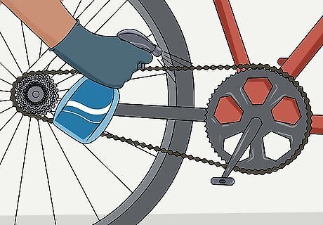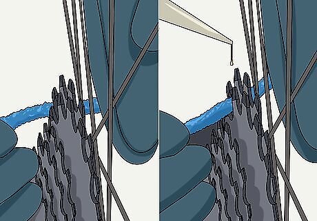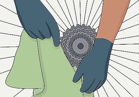 Clean your chain to keep the cassette from getting dirty in the future. Spray your chain with a degreaser and wipe it down thoroughly with a microfiber cloth. Use an Allen wrench to tighten the individual links in the bicycle chain. Then, re-lubricate your bike using a bike chain oil. Pour a few drops of your oil into a cloth and rub the cloth into your chain.Tip: Cleaning your chain once every 1-2 months will dramatically increase the lifespan of your cassette. If you maintain your chain, you may not need to scrub cassette for 4-5 years.
