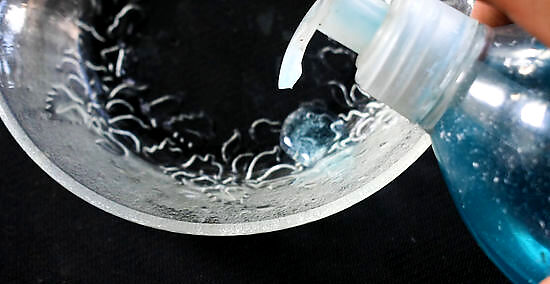 Rinse the individual components with hot, soapy water. Add a few drops of mild liquid soap to a sinkful of hot water. Take a brush to the cutting head and other removable parts of the razor, then swish them through the soap solution to fully clean them. Afterwards, run each piece under a stream of hot water to rinse them. Cleaning the blades with soap will help cut through the congealed oil and skin residue that has a tendency to accumulate inside the cutting mechanisms. Avoid getting any pieces that are directly connected to the battery or electrical input wet.