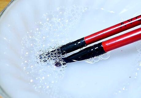 Sink your brushes to this water for sometime (take around five to ten minutes) and rinse off with normal tap water.