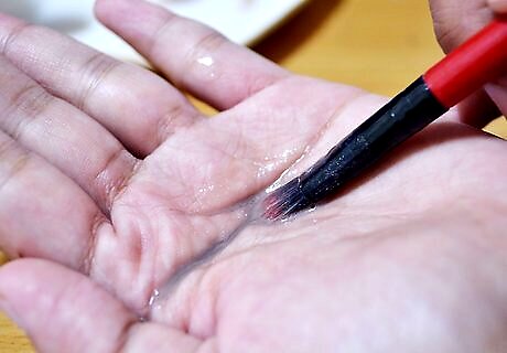 Brush your brush to your palms gently, in order to remove the makeup and dirt.