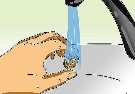 Rinse the soap off of the jewelry. You can do this by running lukewarm water from your kitchen tap over the Black Hills Gold item. If you do not rinse the soap off of the jewelry but instead let it dry on, the soap will build up a slick film over the surface of the gold.