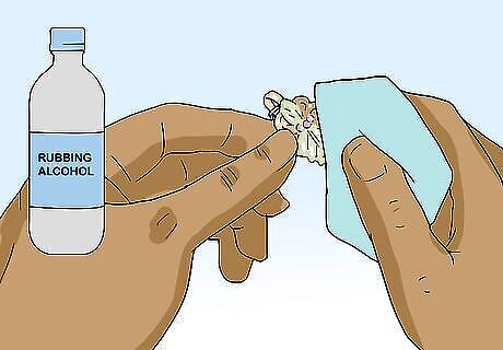 Clean the piece with rubbing alcohol. Rubbing alcohol is an effective substance to clean jewelry with, including Black Hills Gold. Pour a small amount of rubbing alcohol onto a soft cotton cloth, and use this to wipe clean any spots of dirt or grease on your jewelry. As always, when cleaning any jewelry, be careful not to scratch or damage the gold. However, if your Black Hills Gold jewelry contains gemstones that are attached with glue, you should avoid cleaning it with alcohol. The alcohol will corrode the glue, and may result in the gemstones falling out.