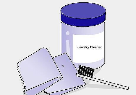 Use an over-the-counter cleaner. This product may contain a brush that you can use to clean your jewelry. If not, you can use a clean cotton cloth or towel. Dip a corner of the cloth into the liquid jewelry cleaner, and then apply the damp cloth to your Black Hills Gold piece. If the jewelry has sticky or oily residue on it, you may need to dip a soft toothbrush into the jewelry cleaner, and gently brush to clean the surface of the jewelry. You should be able to find a suitable jewelry cleaner at any local grocery store or drug store. If you can’t find the product, you may need to check at a hobby store or a jewelry store, which will certainly have a cleaner solution for sale.