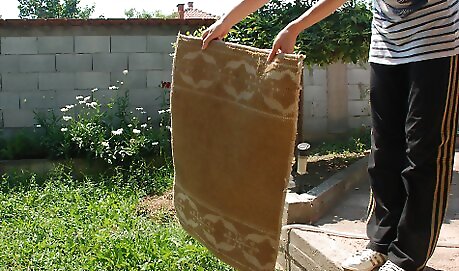 Dry outdoors in sunshine. Keep as flat as possible; do not hang over anything such as the clothesline or the mat will develop a permanent fold mark.