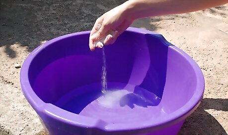 Create a small bucket mix of a little salt and cold water. Make sure to dissolve the salt.
