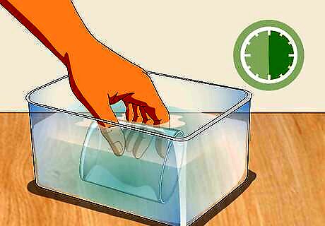 Soak your glasses in the vinegar for 30 minutes. Vinegar works to break down minerals. Make sure your glasses are submerged and leave them to soak for about 30 minutes. Make sure the container won’t get bumped or moved while they are sitting. If your glasses are especially cloudy, leave them in the vinegar for an extra 30 minutes.