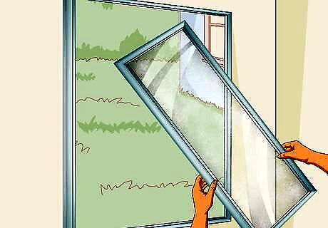 Remove the double-paned window from the frame. Unscrew the window or windows from the hinges or frames of your window. Set the window on a flat surface, like a large table. Keep all the hardware nearby so you can re-install your window easily. Use caution when handling your window. If it is especially large or long, ask another person to help you carry it.