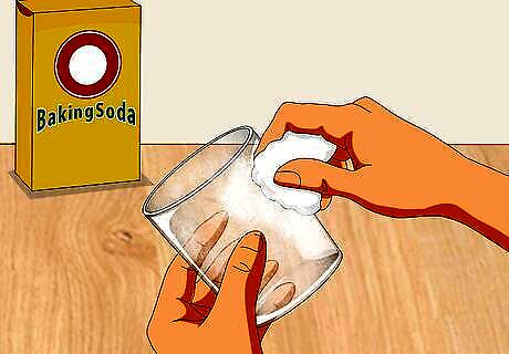 Rub the spots with baking soda if they are still there. If the vinegar did not break down all of the minerals that made your glass foggy, sprinkle baking soda on the cloudy areas. Use a damp towel to gently buff the baking soda into the glass. Baking soda will make scratches less visible and will help to break down any minerals left over. Baking soda is gentle yet abrasive, so it can buff out minerals without scratching your glasses.