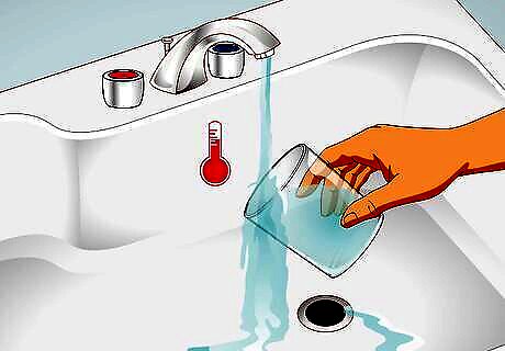 Rinse the glasses in warm water. Take each glass and rinse them one by one to remove any of the vinegar and baking soda left over. Use warm water to break down any of the baking soda that is left and wash it away. Pour the vinegar down your drain. Vinegar and baking soda will not clog your drain, since they break down dirt and grime. It may even help to unclog your drain.