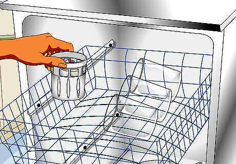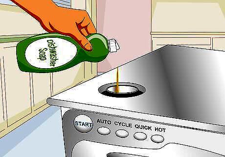 Add a rinse aid to your dishwasher. Rinse aids help to prevent water spots and cloudiness by spreading out the water molecules that your dishwasher uses to rinse your glasses. They are especially helpful if you have hard water, or water with a lot of minerals in it. Pour your rinse aid into its specified compartment in your dishwasher, or purchase a rinse aid basket to hang in your dishwasher to dispense it. You can find rinse aid at most grocery stores in the same section as dishwasher detergent.