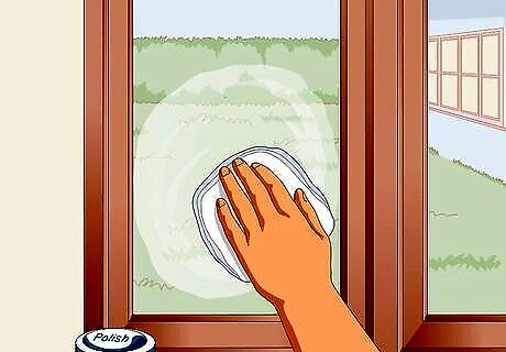 Use a glass polisher if your windows are still hazy. If you are still having trouble seeing through your windows, buff in some glass polisher to make your windows shine. Pour a small amount of polish on a clean rag and buff it into the glass in a circular motion. Do this to both sides of the glass. Wipe it off with a clean towel after the whole window is covered. You can buy glass polisher at most hardware or automotive stores.
