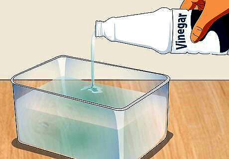 Pour white vinegar into a container large enough to hold your glasses. White vinegar is a natural cleaning agent that breaks down most of the grime that makes glasses cloudy. Pour white vinegar into a bucket or a plugged sink. Make sure the vinegar will be able to submerge all of your glasses that are cloudy.
