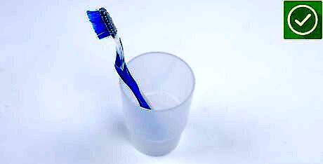 Store your toothbrush in an upright position. You should always store toothbrushes upright. This will allow the toothbrush to dry easier and remove airborne debris. You should have some kind of cup in your bathroom where you store toothbrushes. You can also use a toothbrush holder with a suction cup that can be placed on your mirror. If you're storing multiple toothbrushes in the same container, make sure they don't touch one another. Regardless of what you use to hold your toothbrushes, you should regularly clean your toothbrush holder to prevent bacteria from growing there.