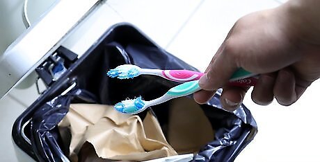 Throw out old toothbrushes. Toothbrushes should generally be replaced every three to six months. Even with proper care, toothbrushes get old with time. After three months have passed, discard your toothbrush and purchase a new one.