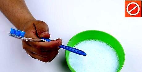 Limit use of disinfectants. It is okay to occasionally clean gunk off the toothbrush's handle, but regular use of disinfectants can be damaging and you may develop allergies on your skin or mucosa if the substance is too concentrated It is not necessary to store a toothbrush in a disinfectant solution. For regular cleaning, tap water is sufficient to safely clean a toothbrush.