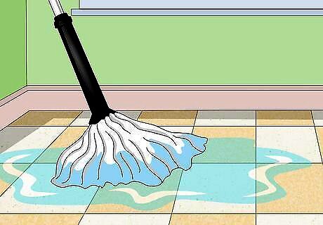Mop the floor. Fill a mop bucket with a diluted neutral detergent solution, then use it to mop the entire surface of the vinyl composite tile floor. Dip your mop back in the detergent solution and wring it out regularly for the most effective mopping experience. Allow the floor to air dry, then mop it again with just water. Mop the floor as often as needed. Spills should be cleaned immediately.