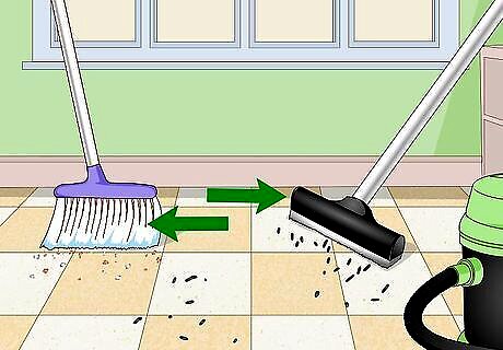 Sweep or vacuum the floor daily. Sweep the vinyl composite tile with a broom or vacuum it daily. This will prevent grit and dirt from building up. Set your vacuum to the lowest height setting when using it on vinyl composite tile.