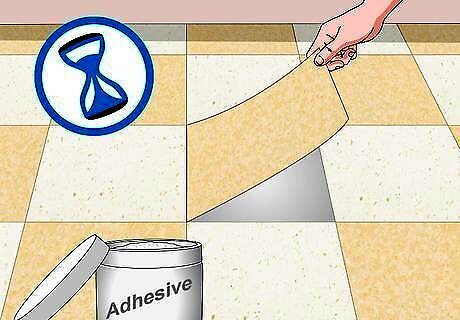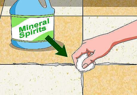 Remove dried adhesive with mineral spirits. Dampen a clean cloth with mineral spirits. Wipe the sticky area of the vinyl composite floor with the rag. Use mineral spirits in a ventilated space, as the vapors can be harmful if inhaled excessively. Open a door or window nearby before utilizing mineral spirits for cleaning the vinyl composite floor.